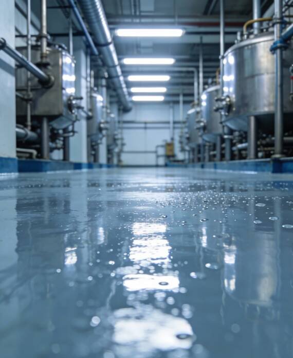 Aplicamos recubrimientos industriales sobre pisos de concreto para proteger la operación, facilitar la limpieza, resistir agentes químicos y cumplir normativas específicas de cada industria.